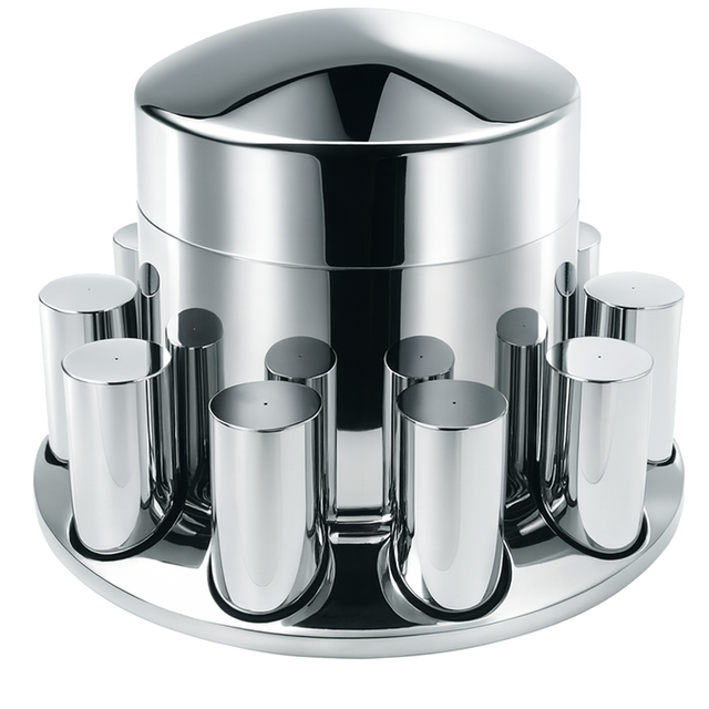 Rear Axle Wheel Cover "Extra Tall Round Top" With 10 Thread-On Nut Covers, High Quality Chrome Plated ABS Plastic