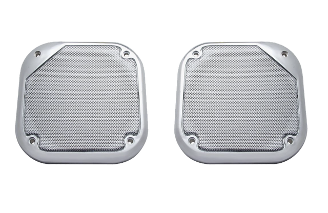 - 5-1/2" Chrome square speaker cover, screw on.