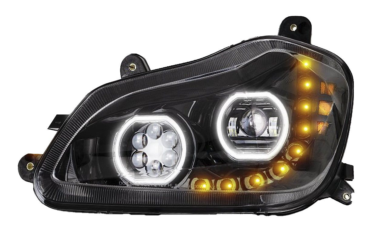 Upgrade your Kenworth T680 with modern styling and superior road visibility. This high-power LED headlight features a built-in sequential amber turn signal that flows smoothly across the lens, giving your truck a premium, next-generation look day or night.