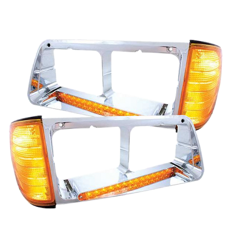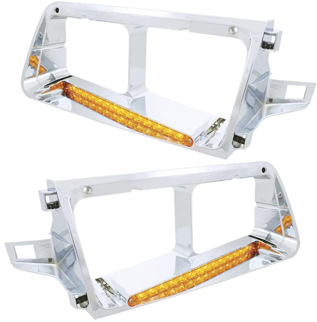 Freightliner FLD 120 (1989-2009) - Headlight Bezel With 19 LED Strip Light and Turn Signal