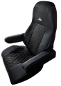 Crafted from high-quality Napa-style faux leather, this complete front seat cover set includes matching armrest covers for a clean, factory-installed appearance. The perforated padded panels enhance airflow and cushioning, helping reduce fatigue on long hauls and improving overall driving comfort. A stylish stitched pattern adds an upscale finish that transforms your truck’s cab interior.A