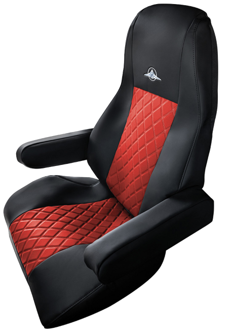Freightliner Cascadia High Back 33 Inches Faux Leather Semi Truck Seat Cover – Black / Red