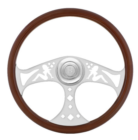 18 Inch Wood Steering Wheel with Chrome Lady Design Spokes (Copy)