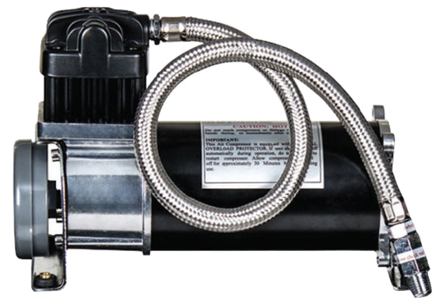 • Kit includes air compressor, high pressure steel braided air hose, wiring harness with in-line fuse, air filter, and mounting hardware.