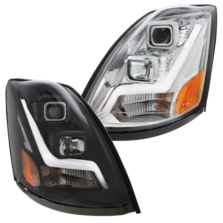 Volvo VN/VNL (2003-2017) - Projection Headlight With Amber LED Light Bar
