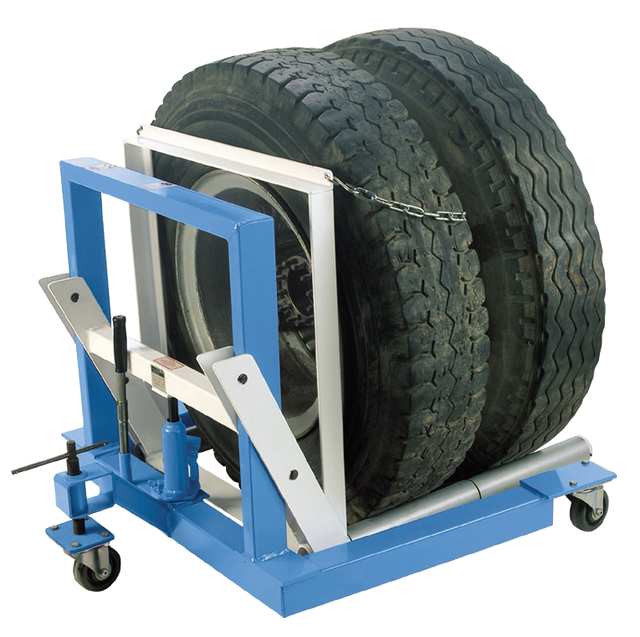 - Hydraulic jack provides almost 5" of lift and tilts wheel assembly 4° to prevent damage to wheel seal.