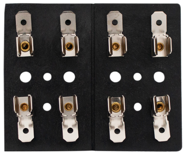 • Each fuse holder features two .250-inch tabs, ensuring stable and efficient electrical connections. Its robust design supports easy installation and maintenance, making it suitable for automotive, marine, and industrial applications.